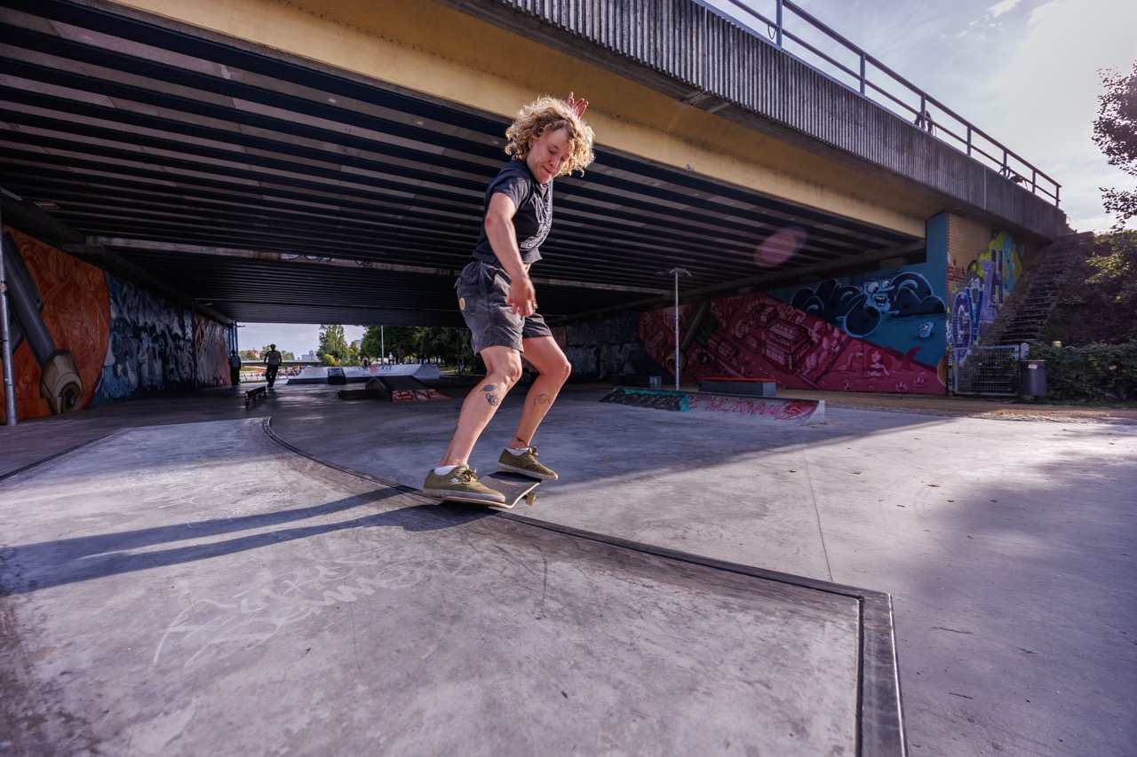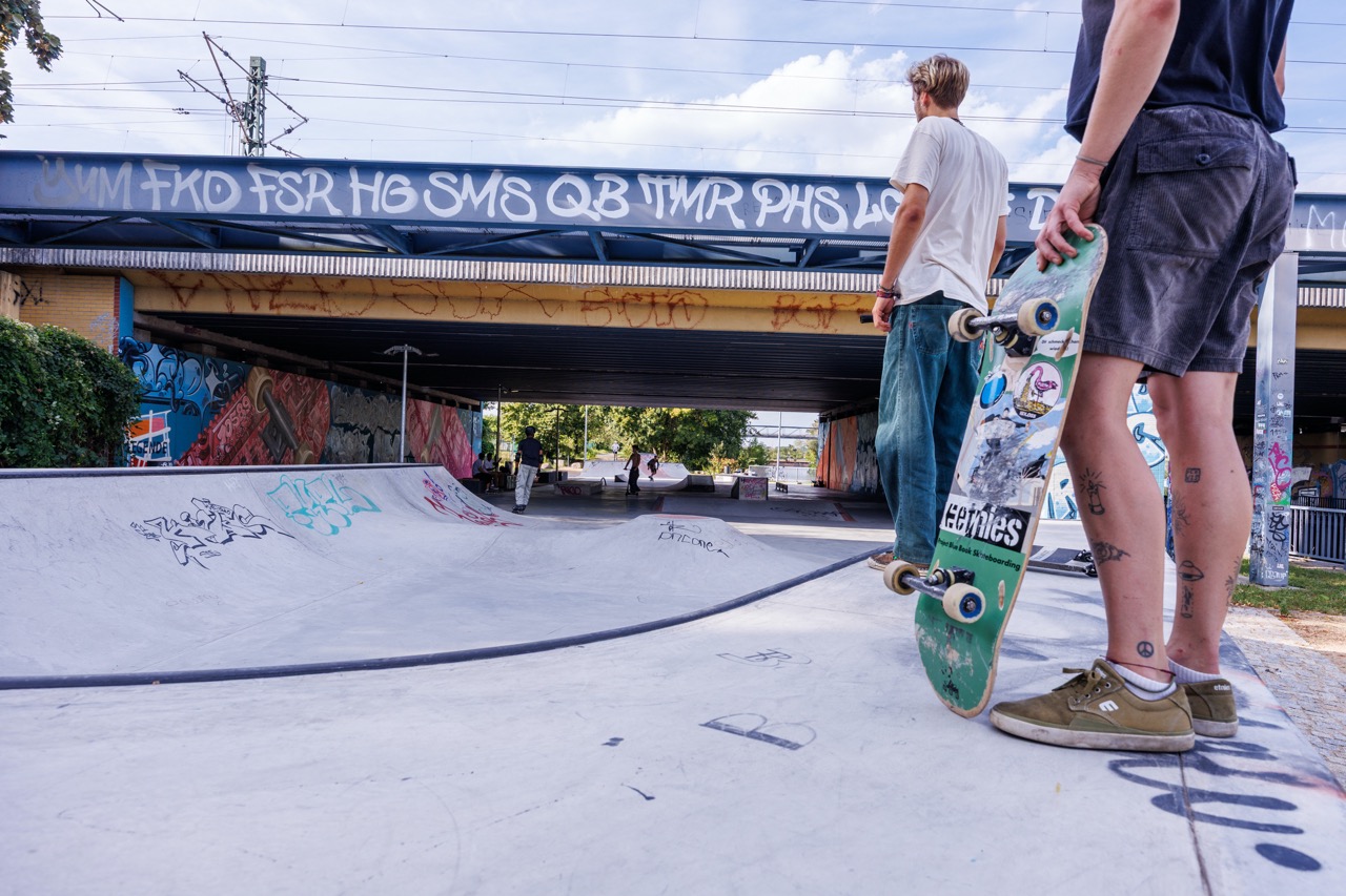 Das Ergebnis ist ein vielfältig nutzbarer Freiraum mit klar gegliederten Bereichen: Unter der Eisenbahnbrücke entstand ein Skatepark mit Street- und Transition-Elementen, geplant in enger Abstimmung mit Jugendlichen und Skater*innen aus dem Umfeld.