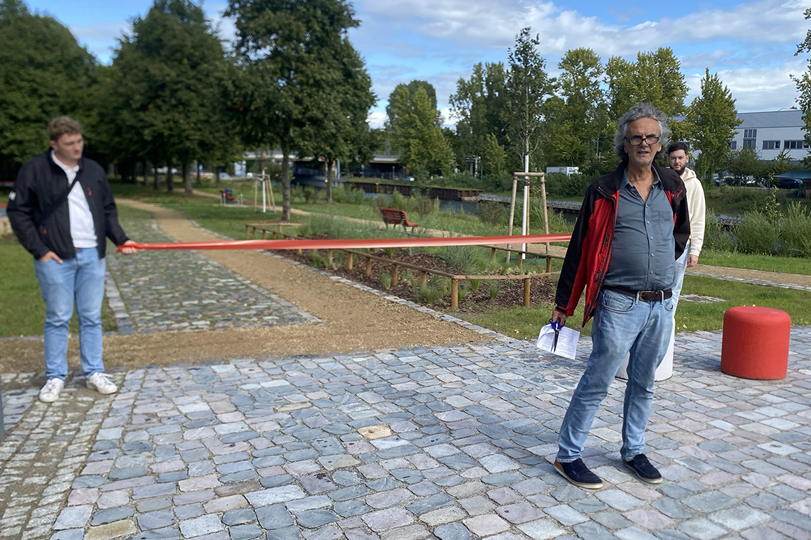Am 15. September wurde bei Sonnenschein die neue Grünanlage am Goslarer Ufer eröffnet. Bezirksstadtrat Oliver Schruoffeneger und Jochen Flenker vom SGA Charlottenburg-Wilmersdorf begrüßten zahlreiche Beteiligte und Bewohner*innen der Mierendorff-INSEL, die das Projekt aktiv mitgestaltet haben.